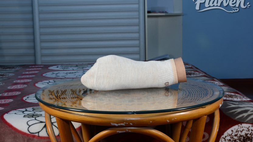 這雙從真實身體上剝離下來的襪子模型,不再依附於任何軀體,只剩下一隻潔白棉質包裹的完美足部,靜靜佇立在玻璃桌上,等待被送往商場公開展示。